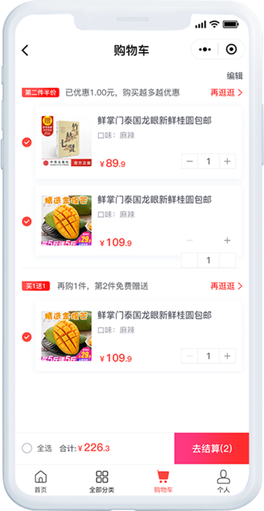 第N件打N折可设置第2件半价、买一赠一、自定义优惠三种优惠方式,满足更多个性化需求;